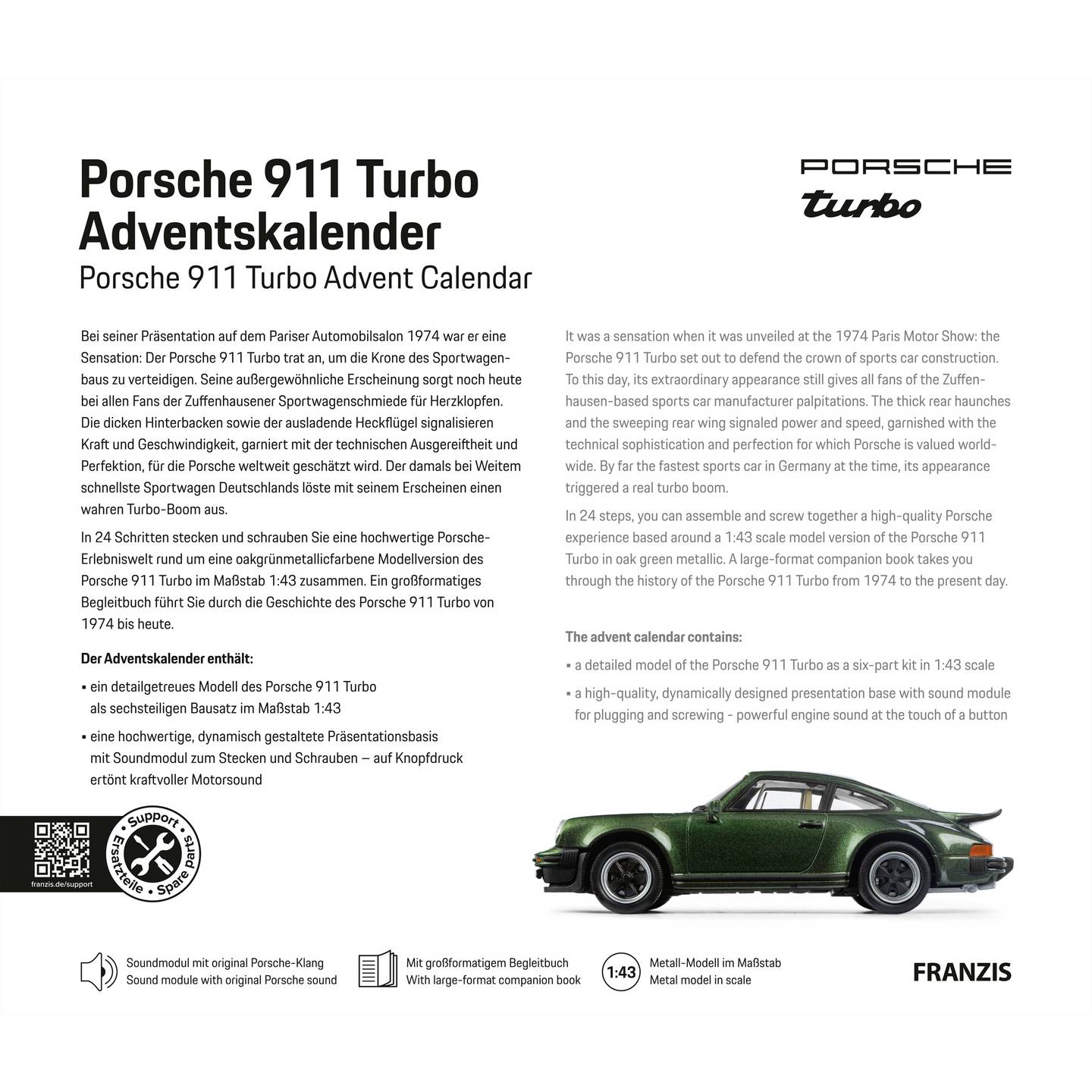 Each calendar includes 24 surprises that let you build your own detailed Porsche model available in 1:43 or 1:24 scale, depending on the edition. Step by step, you’ll assemble authentic model parts, add exclusive Porsche accessories, place it on a premium display base, and enjoy an integrated sound module with the original engine sound. A richly illustrated companion book with Porsche background stories makes the countdown to Christmas even more special